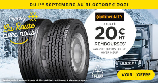Du 1er septembre au 31 octobre 2021, pour l’achat d’un pneumatiques Poids Lourd hiver neufs Continental, bénéficiez de remboursement jusqu’à […]